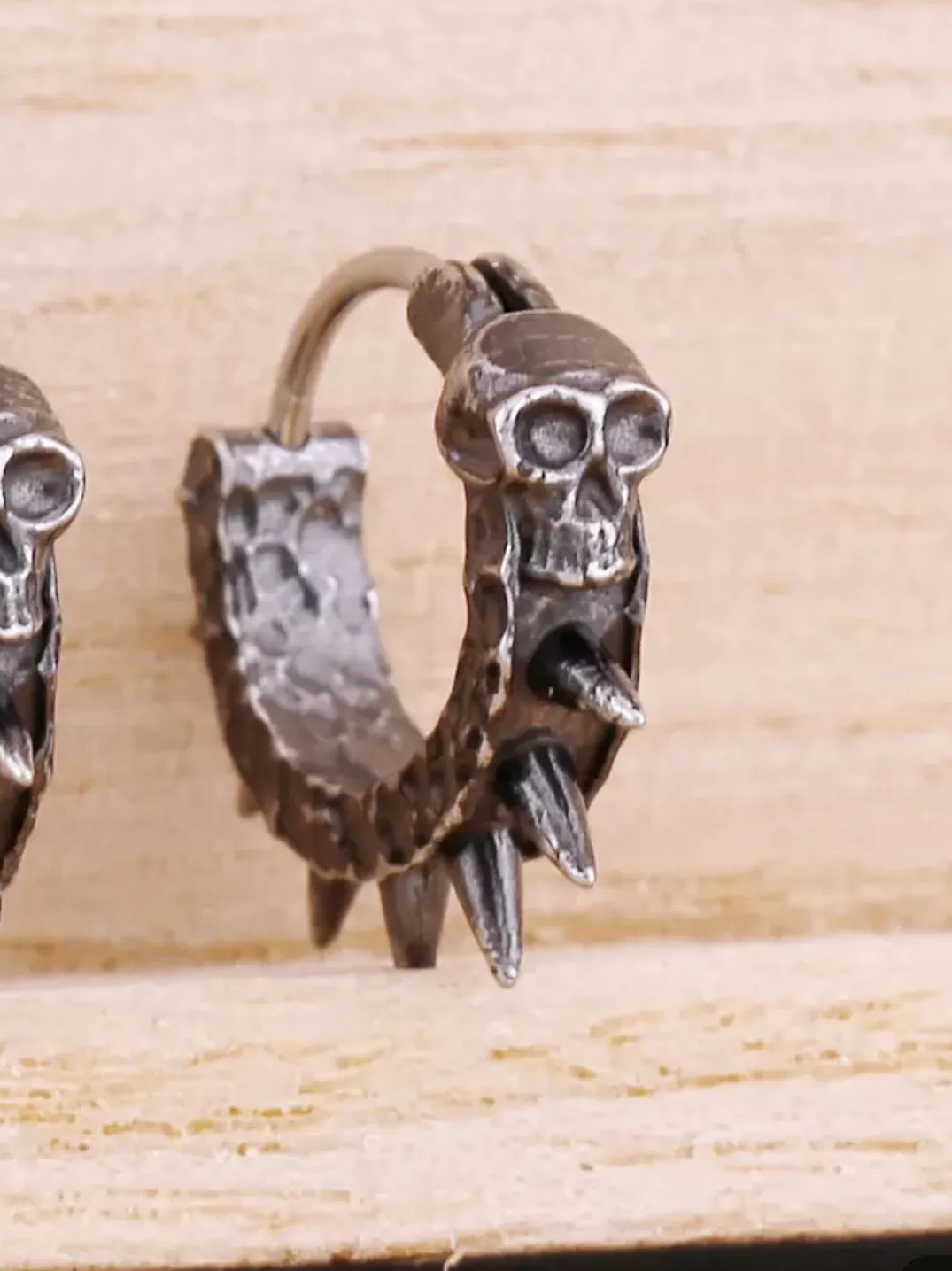 Esta Argolla de Calavera de Acero Inoxidable envejecida es una opción ideal para los amantes del estilo rockero y aquellos que desean expresar su rebeldía. Lleva contigo la actitud del rock y la elegancia envejecida con este aro que añade un toque distintivo a tu look diario.