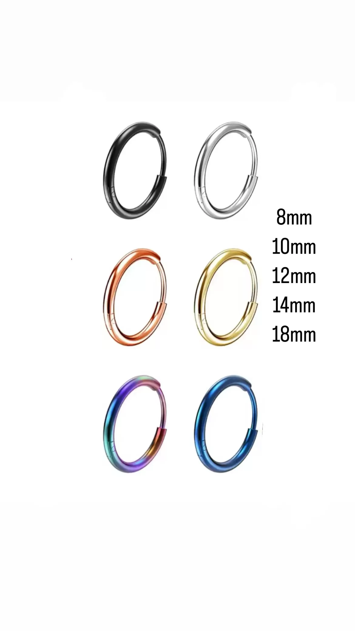 - Variedad: Disponibles en negro, plata, oro y más, con diferentes diámetros para múltiples ubicaciones de piercing.