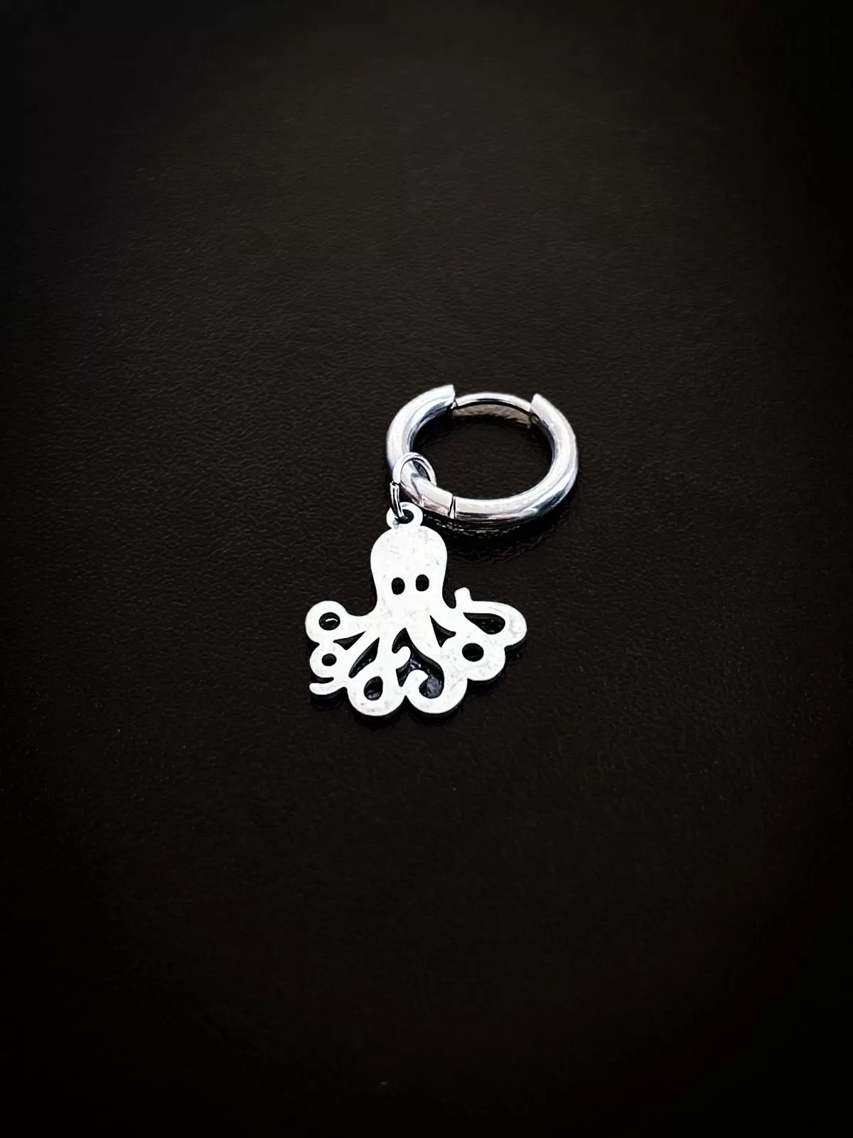 Fabricado en acero quirúrgico de alta calidad, este aro presenta un diseño encantador de un pulpo colgante, capturando la esencia de la elegancia marina con un toque de intriga. Lleva contigo el encanto del océano con este impresionante aro colgante.