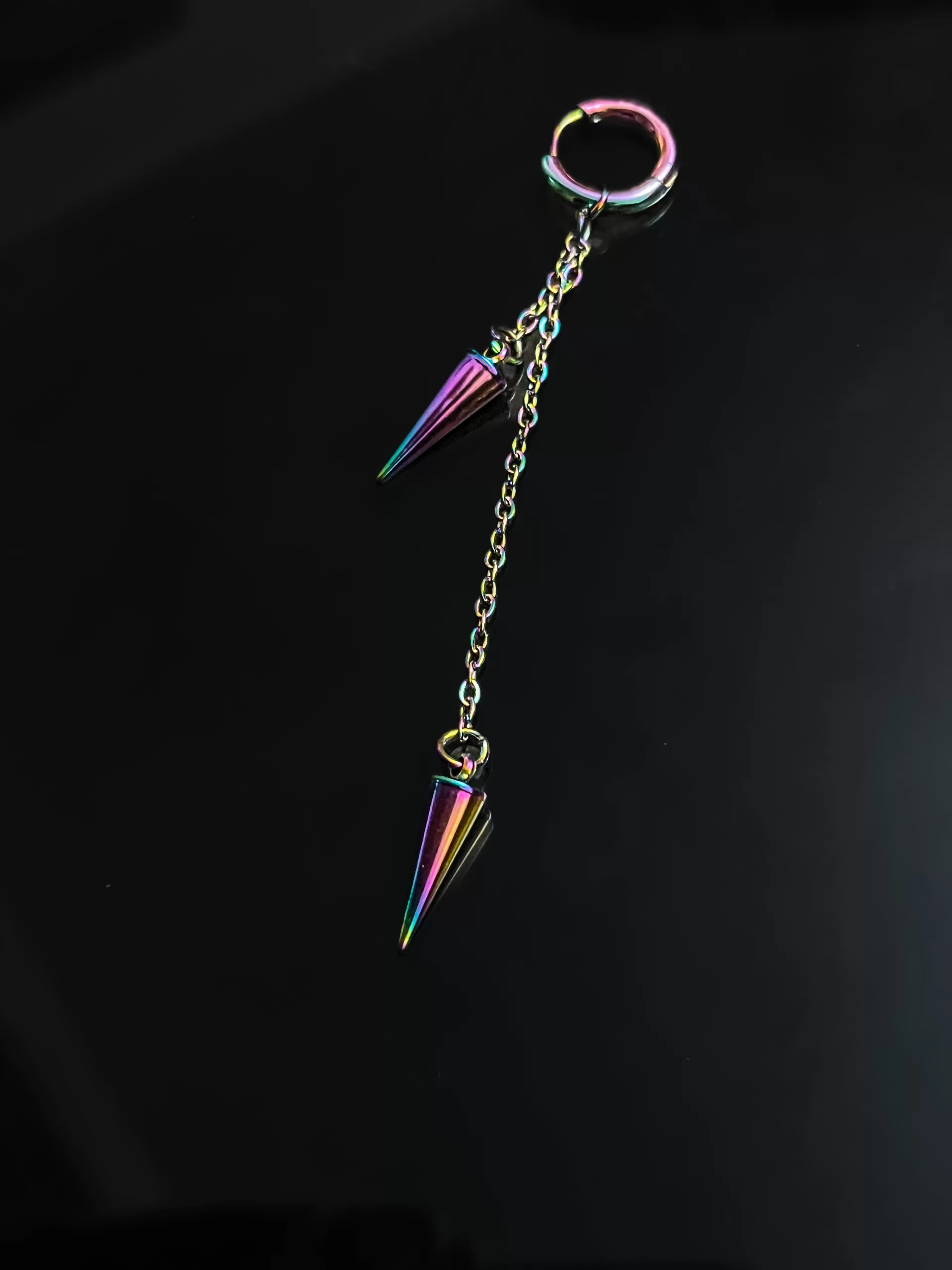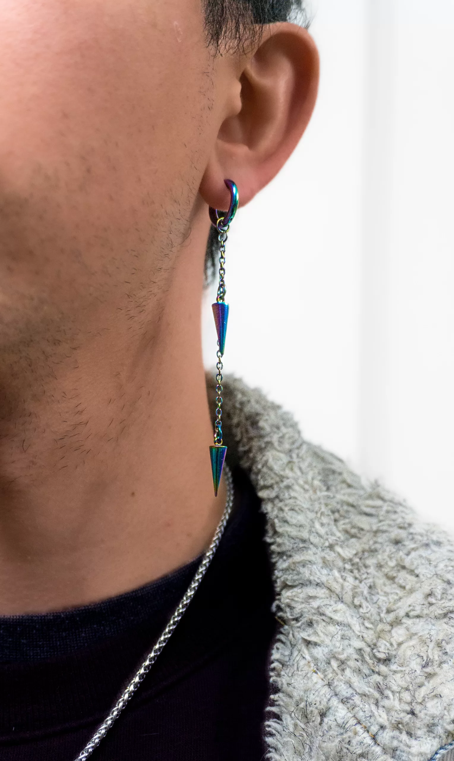 El Aro hombre Doble péndulo con cadena variedad colores tiene estilo, personalidad pero a la vez se ve muy sofisticado, por la forma de sus péndulos y las cadenas, puedes usarlo en toda ocasión