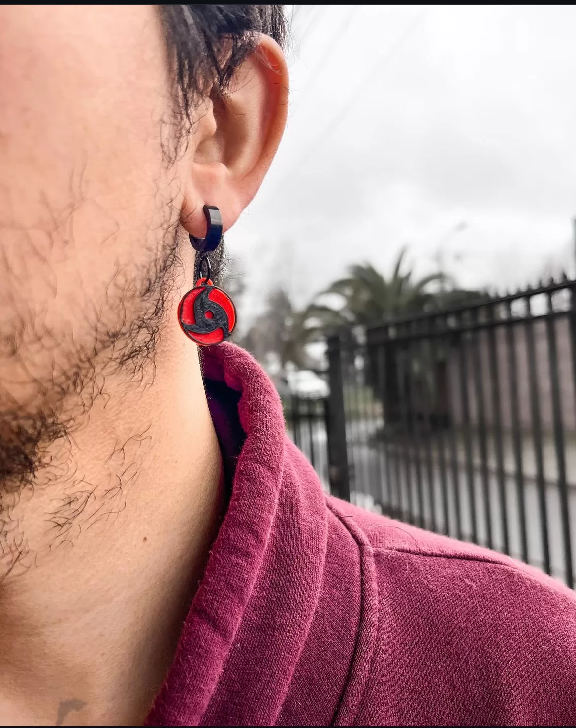 Aro naruto sharingan, colgante con argolla de 9mm tipo clip de acero quirúrgico electropintado en color negro, y dije colgante con forma de sharingan.
