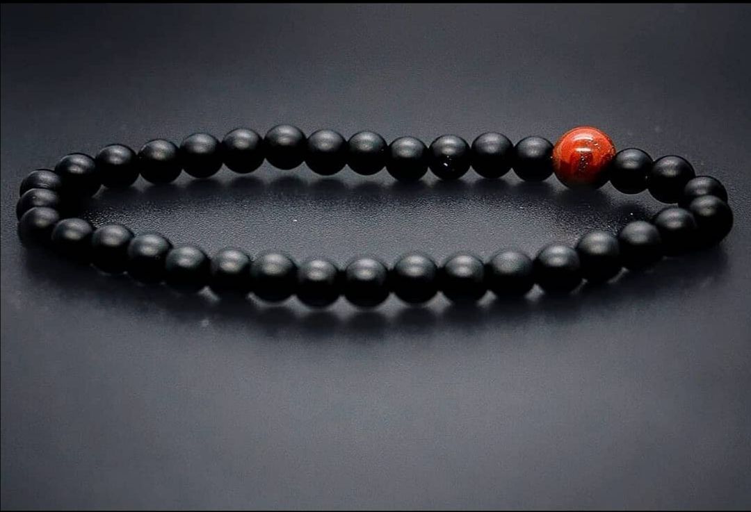 Explora la belleza natural y la conexión espiritual con nuestra pulsera elástica, elaborada con piedras naturales volcánicas de 6 mm de diámetro y una roja en medio de 8 mm de diámetro Cada piedra, única en su textura y coloración, representa la fuerza de la tierra y la serenidad del cielo en una combinación armoniosa.