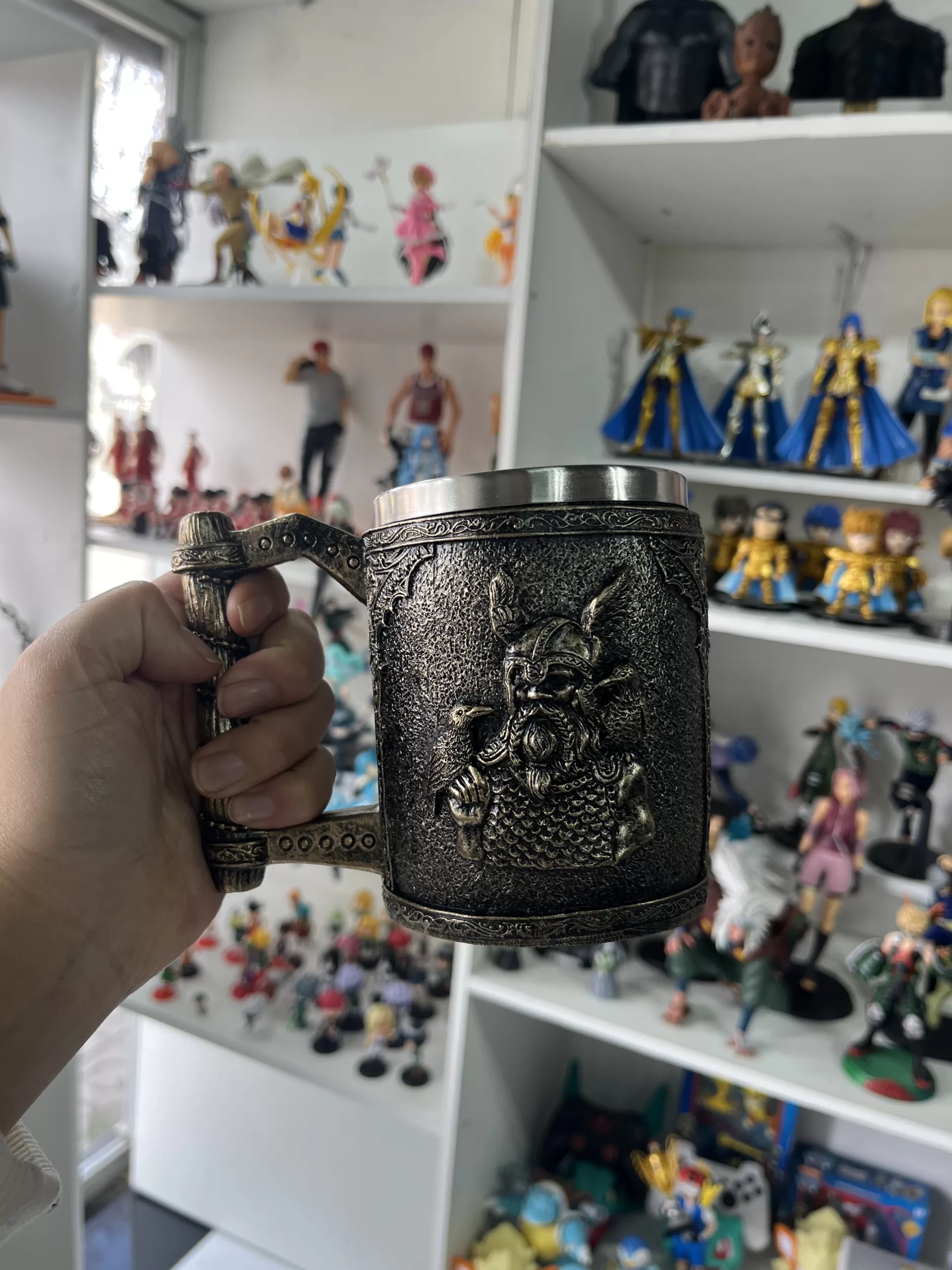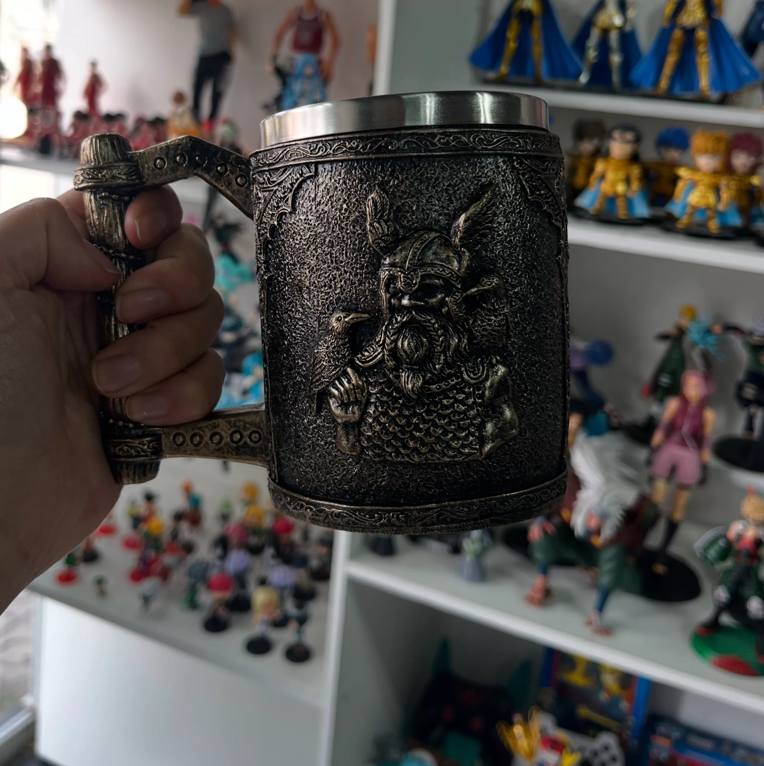 Experimenta la fusión perfecta entre arte y funcionalidad con nuestro tazón shopero de 350cc, diseñado para los amantes del estilo y la calidad. El interior de acero inoxidable asegura durabilidad y facilidad de limpieza, mientras que el exterior presenta un impresionante diseño del Dios de los vikingos Odin en medio de un diseño imitando al metal y colores tanto usado por la cultura vikinga , creado con tecnología de impresión 3D de vanguardia.
